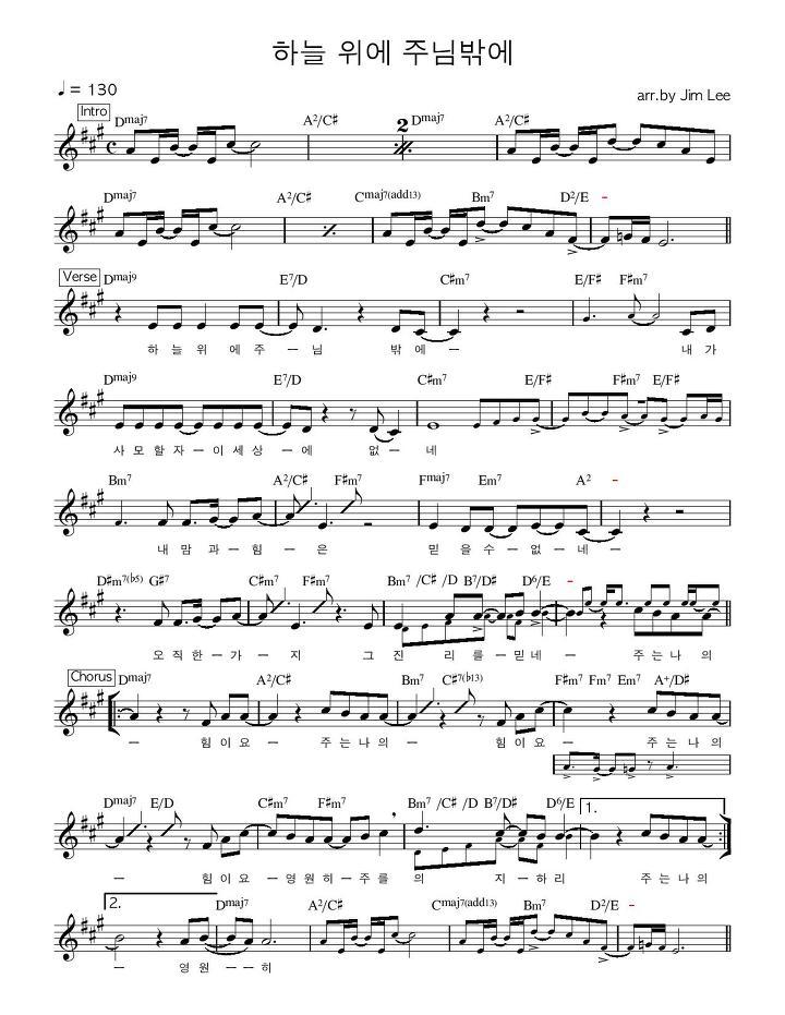 찬양 하늘 위에 주님 밖에 악보입니다.
