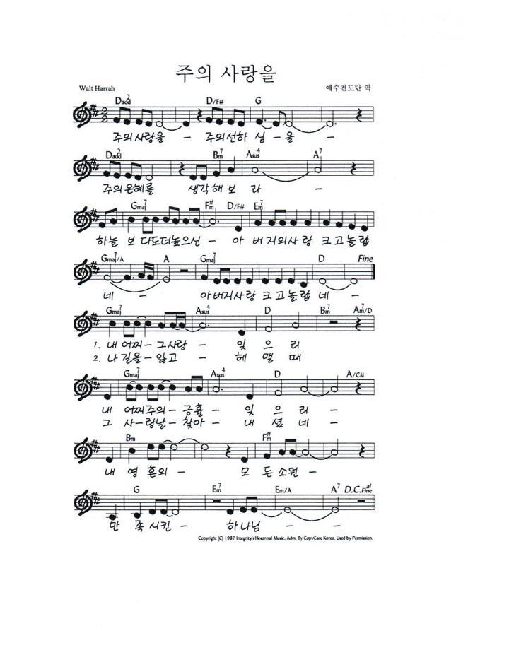 찬양 주의 사랑을 악보입니다.