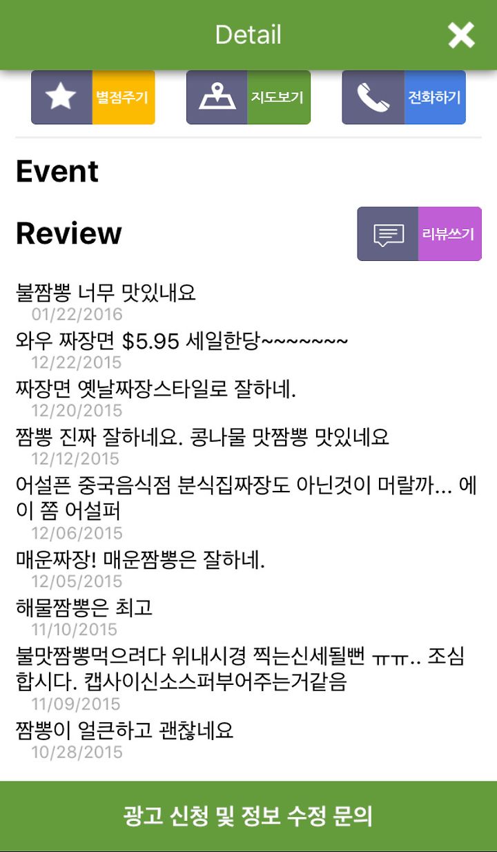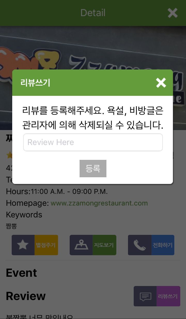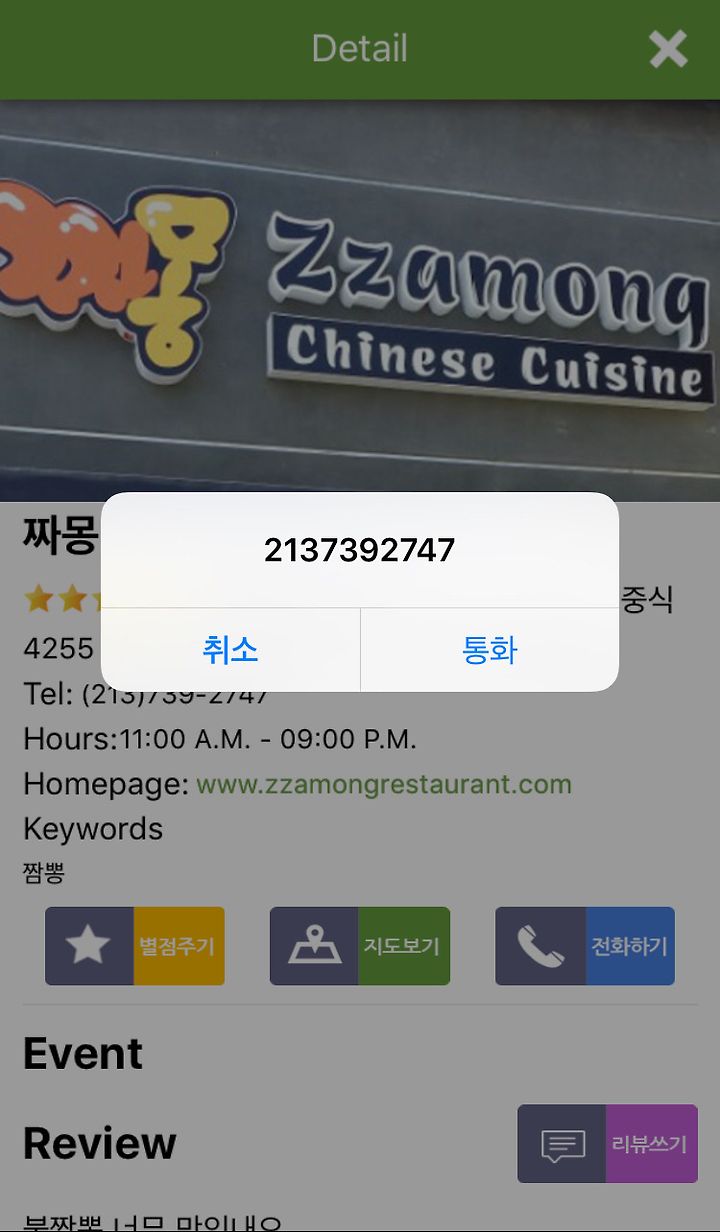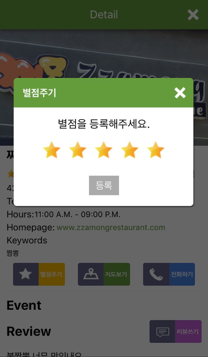 별점, 리뷰, 전화연결, 직접 찾아갈수 있게 맵으로 연결까지!!!