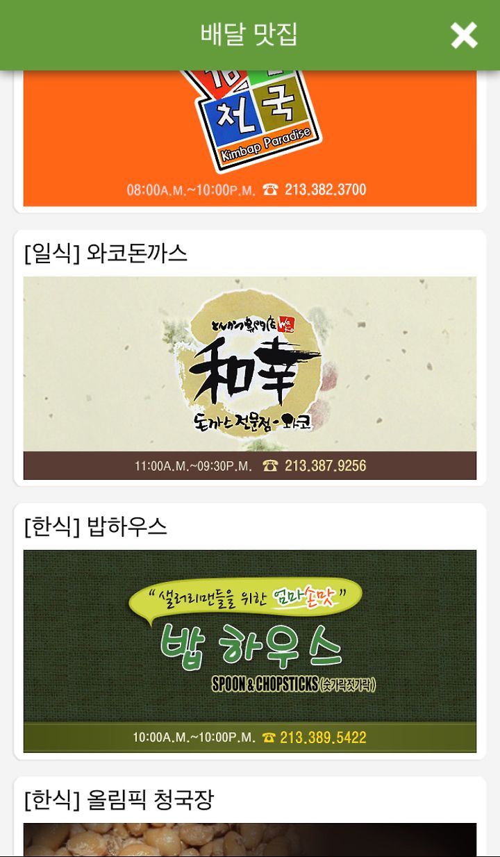 김밥천국, 와코돈까스, 밥 하우스, 올림픽 청국장